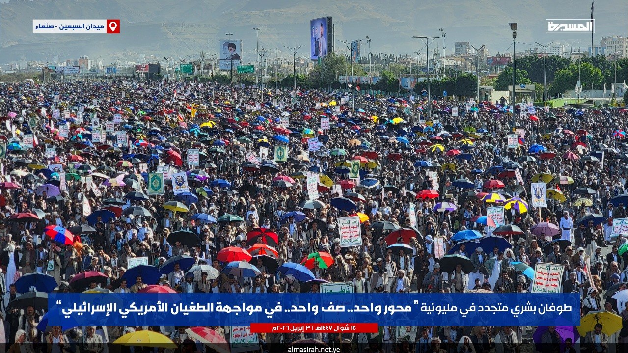 صنعاء تحتشد بالملايين تأكيدًا لوحدة الساحات ودعمًا لمحور المقاومة