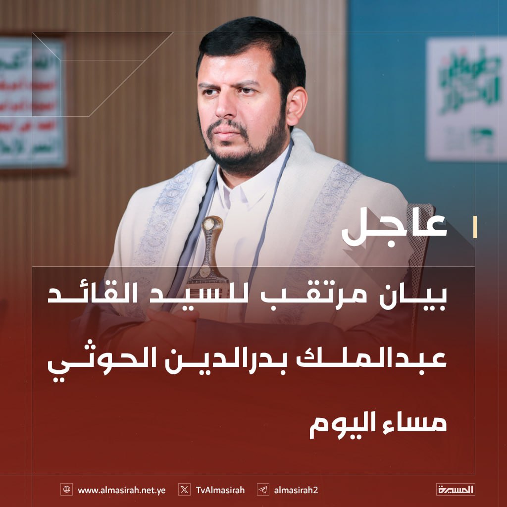 18:53بيان مرتقب للسيد القائد عبدالملك بدرالدين الحوثي مساء اليوم