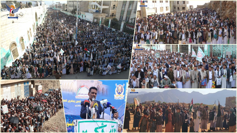 مئات المسيرات الحاشدة في ساحات حجة نصرةً للشعب الفلسطيني واستعدادا لمواجهة الأعداء