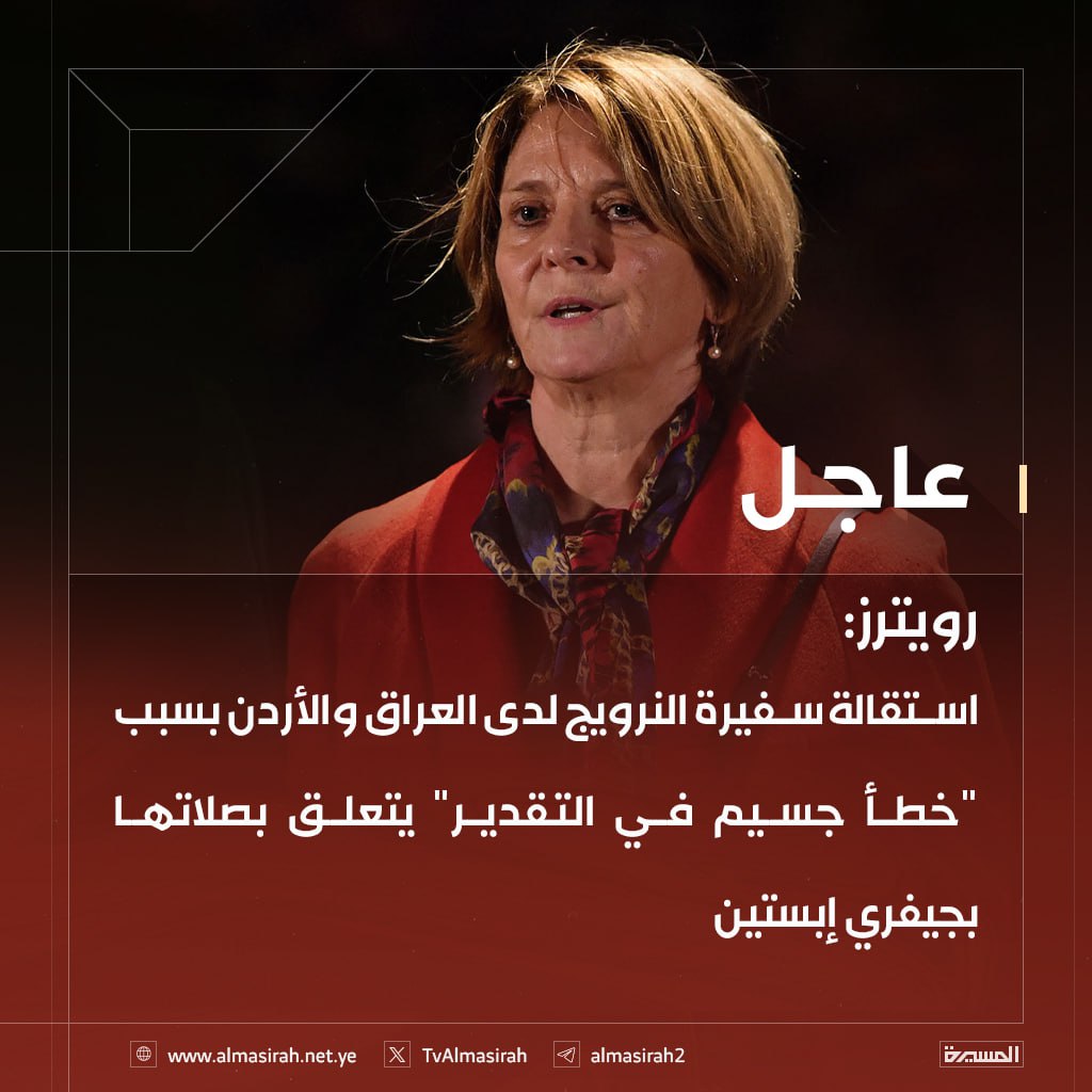 أفادت وكالة رويترز، اليوم الاثنين، باستقالة سفيرة النرويج لدى كل من العراق والأردن، بعد إقرارها بارتكاب ما وصفته بـ"خطأ جسيم في التقدير" على خلفية صلات سابقة لها بالملياردير الأمريكي جيفري إبستين، الذي ارتبط اسمه بفضائح أخلاقية مدوية هزّت الأوساط السياسية والمالية في الغرب.