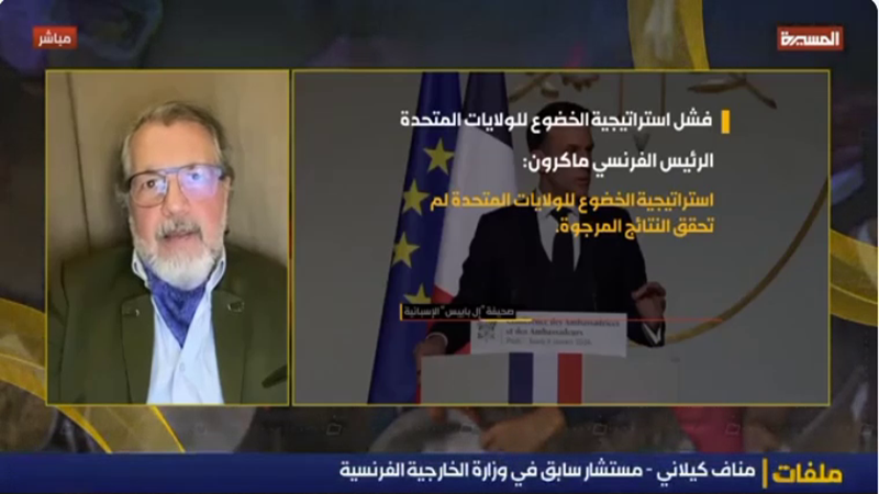 المسيرة نت | خاص: اعتبر المستشار السابق في الخارجية الفرنسية مناف كيالي أن الخطاب السياسي للرئيس الفرنسي إيمانويل ماكرون بات جزءاً من سردية متكررة تهدف إلى صرف انتباه الرأي العام الفرنسي عن أزمات داخلية متفاقمة، في وقت يجري فيه تهيئة الفرنسيين والأوروبيين لاستمرار الحروب القائمة والدخول في صراعات جديدة، وسط تبعية أوروبية متزايدة للقرار الأمريكي.-
