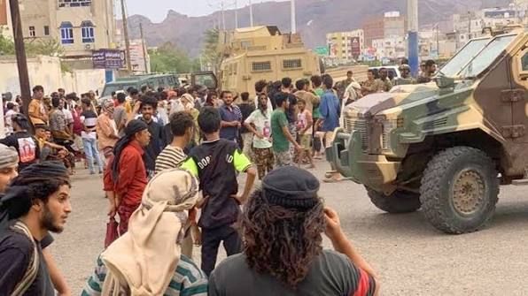 ونقلت عن عناصر من تلك القوات المدعومة سعودياً، أن مدرعة متمركزة في البوابة الشرقية للقصر تعرضت لإطلاق نار من قبل مجهولين، في وقت تزامن فيه ذلك مع اقتحام محتجين تابعين للانتقالي بوابة القصر من جهة حقات، في محاولة لطرد "حكومة الفنادق".