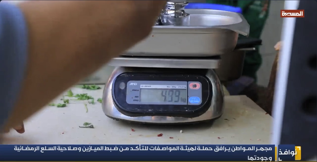 المسيرة نت | هاني أحمد علي: في إطار تعزيز الرقابة الشعبية والرسمية على الأسواق، وضمن جهود حماية المستهلك اليمني من الغش والتدليس، واكبت قناة "المسيرة" عبر نافذة "مجهر المواطن" الحملة الميدانية الواسعة التي دشنتها الهيئة اليمنية للمواصفات والمقاييس وضبط الجودة مع حلول شهر رمضان المبارك، لضبط الموازين والمكاييل وتكريس معايير الجودة في مختلف المحافظات الحرة.