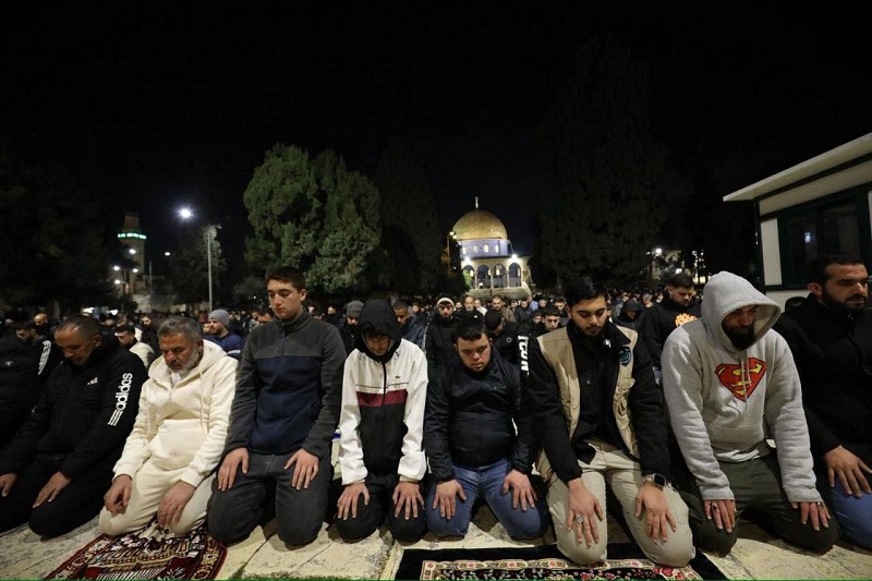 وأدى نحو 40 ألف مصلٍ، مساء اليوم الأربعاء، صلاتي العشاء والتراويح في المسجد الأقصى، رغم القيود والإجراءات التي تفرضها سلطات الاحتلال الإسرائيلي على دخول المصلين إلى البلدة القديمة.