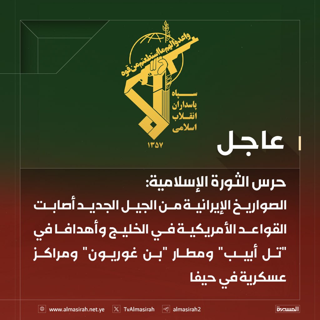 المسيرة نت | متابعات: أعلن الحرس الثوري الإيراني عن نجاح الموجة 22 من عملية الوعد الصادق4، مؤكداً إصابة أهداف متعددة للعدو الأمريكي والعدو الصهيوني بدقة عالية، امتدت من منطقة الخليج إلى مدينة تل أبيب في فلسطين المحتلة، بما في ذلك قواعد أمريكية ومواقع عسكرية صهيونية رئيسية.