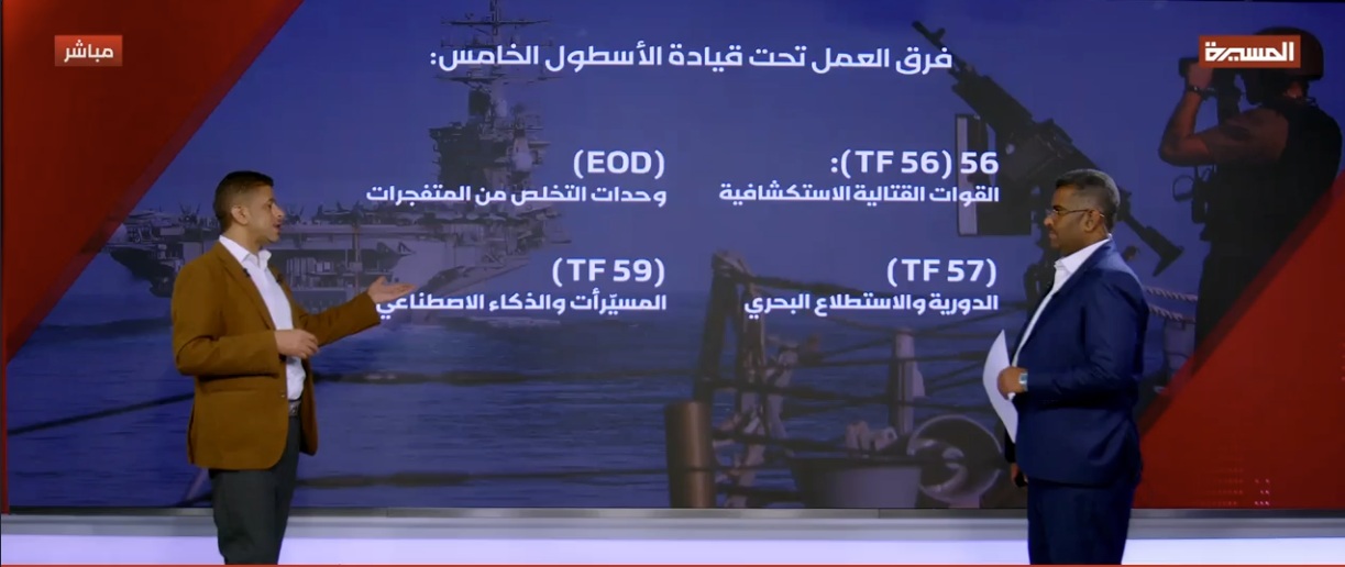 في ذلك القوة الأمريكية والبريطانية، حيث يضم الأسطول الخامس فرق عمل متخصصة