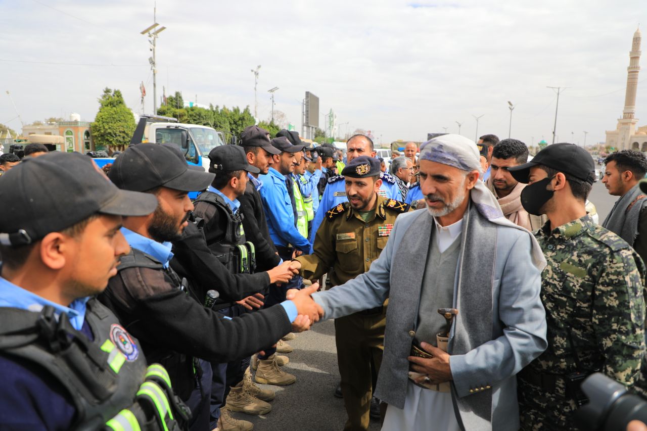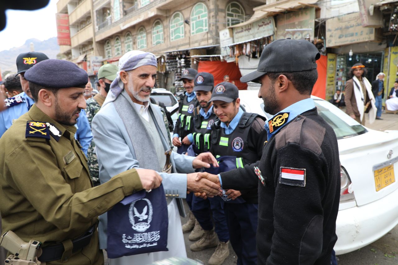وخلال الجولة، كرم العلامة مفتاح عدداً من منتسبي شرطة المرور وقوات النجدة والدفاع المدني، تقديراً لجهودهم الاستثنائية وانضباطهم العالي في أداء مهامهم الوطنية، ناقلاً إليهم تحيات وشكر القيادة الثورية والسياسية.