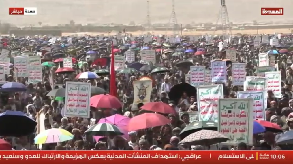 المسيرة نت | خاص: توافد الآلاف من أبناء وأحرار قبائل صعدة، اليوم الجمعة، في مسيرات جماهيرية حاشدة إسنادًا لإيران ولبنان والعراق، وتحت شعار "محور واحد صف واحد في مواجهة الطغيان الأمريكي والإسرائيلي".