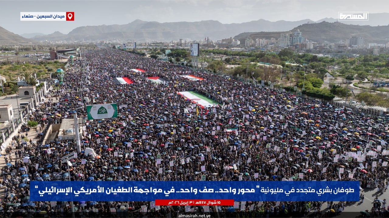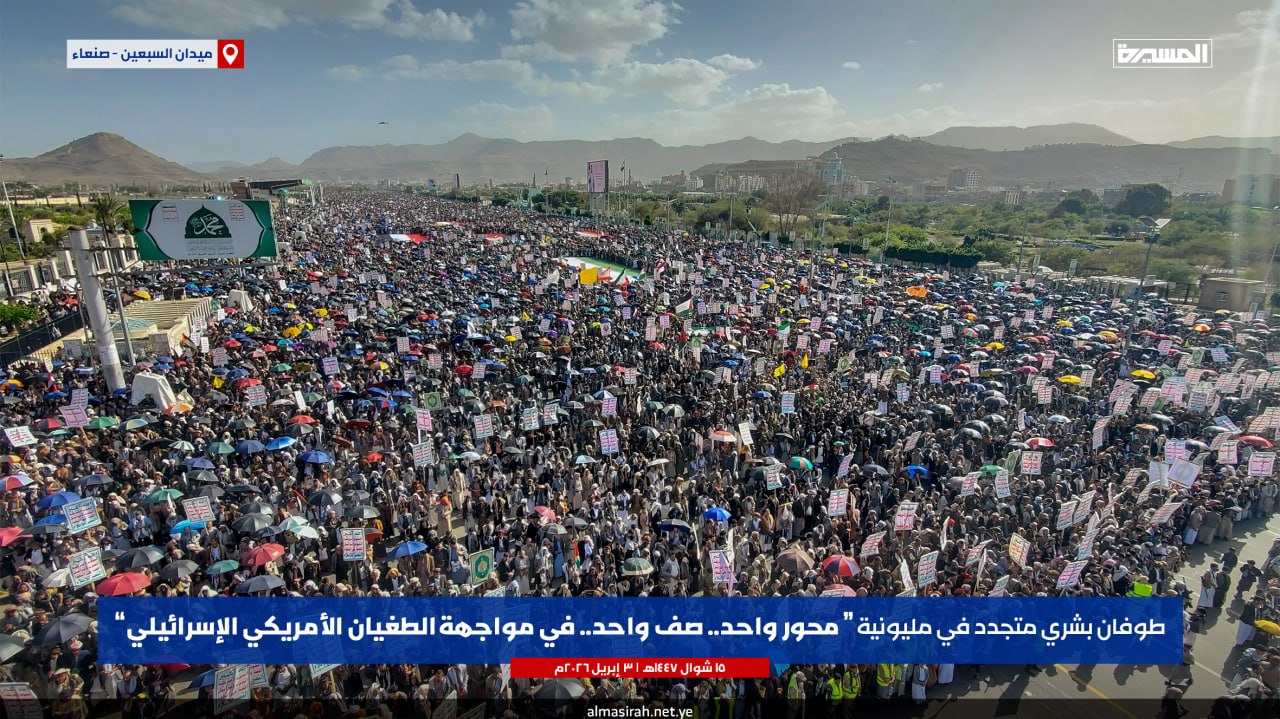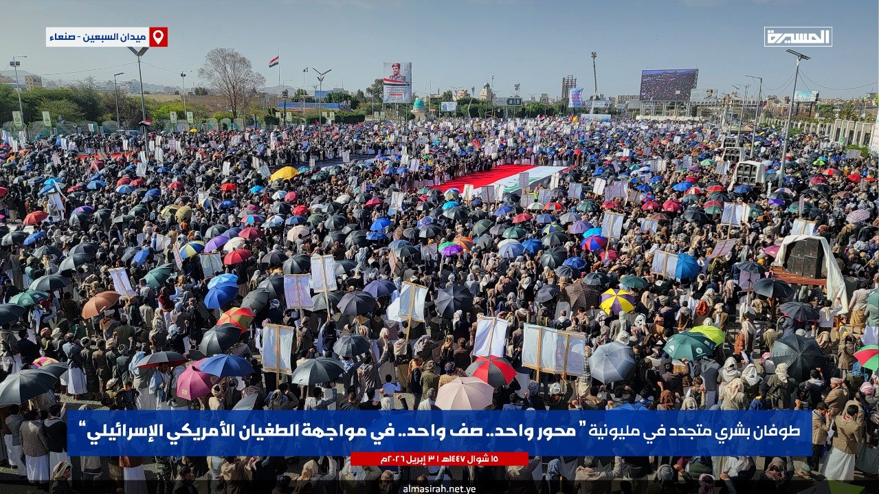 []🔵 بيان مليونية (محور واحد صف واحد في مواجهة الطغيان الأمريكي الإسرائيلي) في #ميدان_السبعين بالعاصمة #صنعاء | 15-10-1447هـ 03-04-2026م#محور_واحد_ضد_الطغيان pic.twitter.com/n85NPh55uz