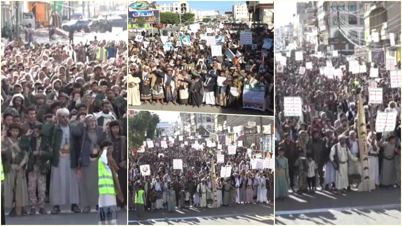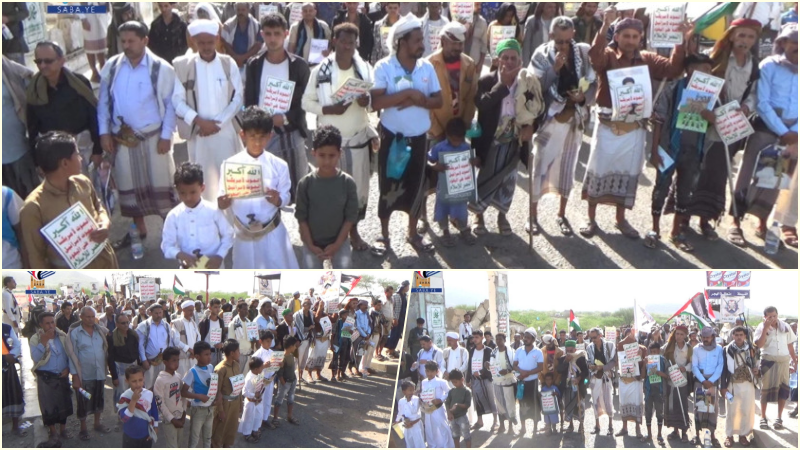 ثلاث مسيرات جماهيرية حاشدة في لحج تحت شعار "ساحاتنا واحدة، مع فلسطين ضد الطغيان ولن نترك لبنان"