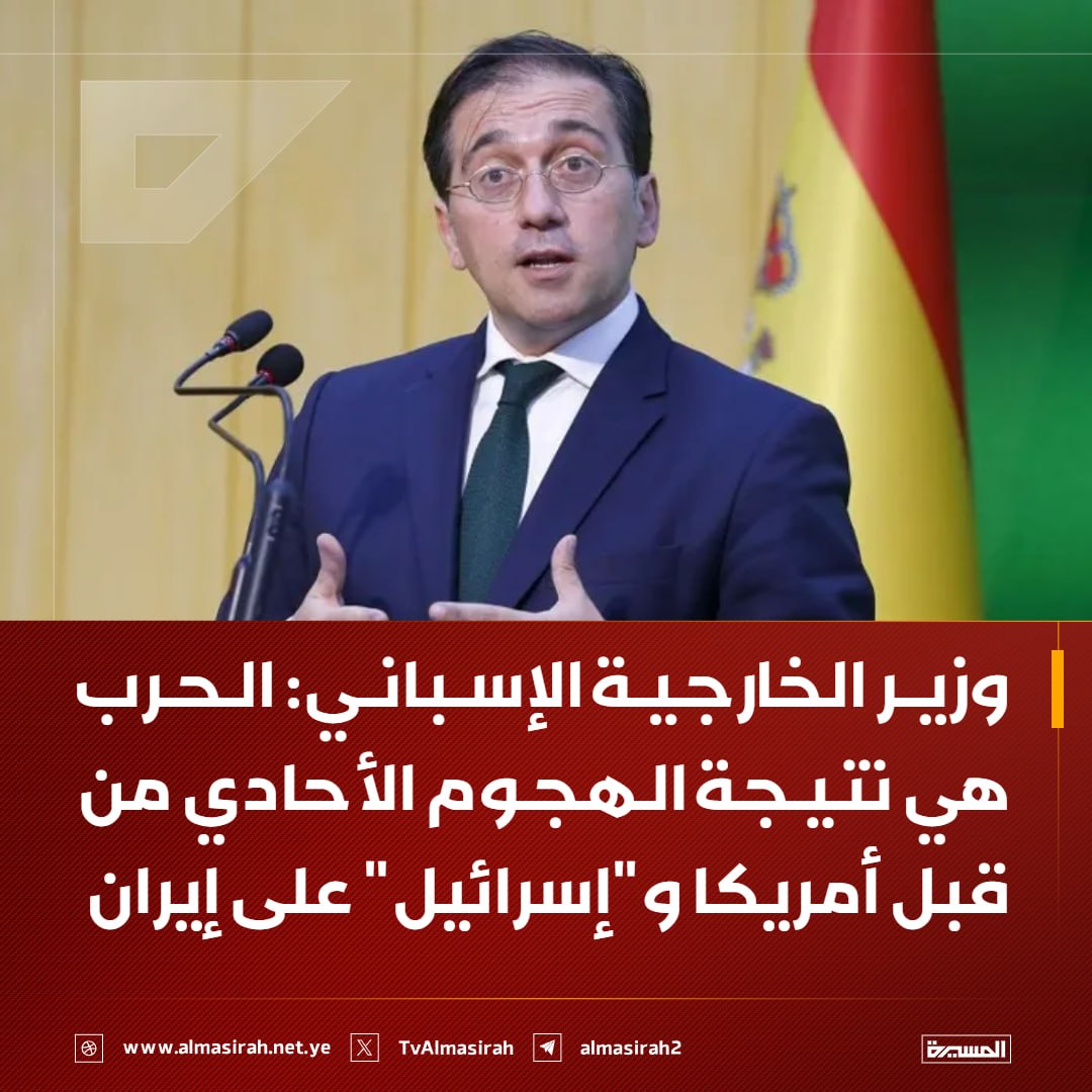 المسيرة نت | متابعات: أكد وزير الخارجية الإسباني، خوسيه مانويل ألباريس، أن الحرب الجارية في المنطقة جاءت نتيجة الهجوم الأحادي الذي شنته الولايات المتحدة وكيان العدو الصهيوني على الجمهورية الإسلامية الإيرانية، مشيراً إلى أن هذا التصعيد كان العامل الأساسي في تفجير التوترات الإقليمية الأخيرة.-