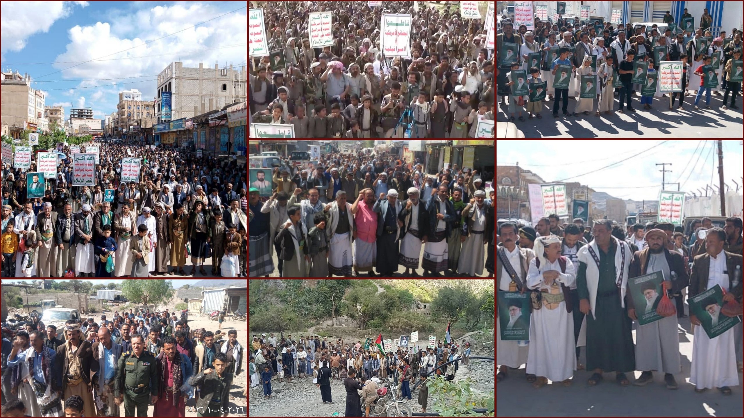 المسيرة نت| ريمة: شهدت محافظة ريمة اليوم، أكثر من 100 مسيرة جماهيرية مباركة بالانتصار التاريخي لمحور المقاومة، وتأكيدا على الثبات مع غزة ولبنان تحت شعار "شكراً لله واحتفاءً بالنصر .. ساحاتنا واحدة في مواجهة الصهيونية".