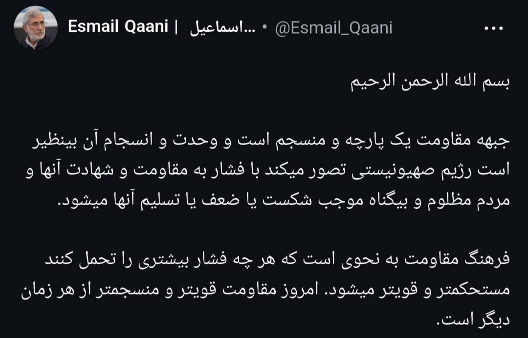 وشدد قاآني على أن المقاومة أصبحت