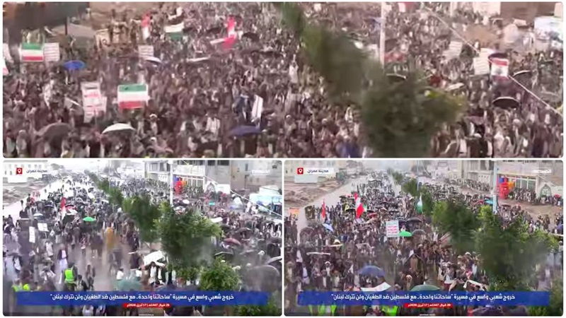 المسيرة نت| عمران: شهدت محافظة عمران، اليوم الجمعة، مسيرات حاشدة في أكثر من 144 ساحة، بمسيرات "ساحاتنا واحدة.. مع فلسطين ضد الطغيان ولن نترك لبنان".