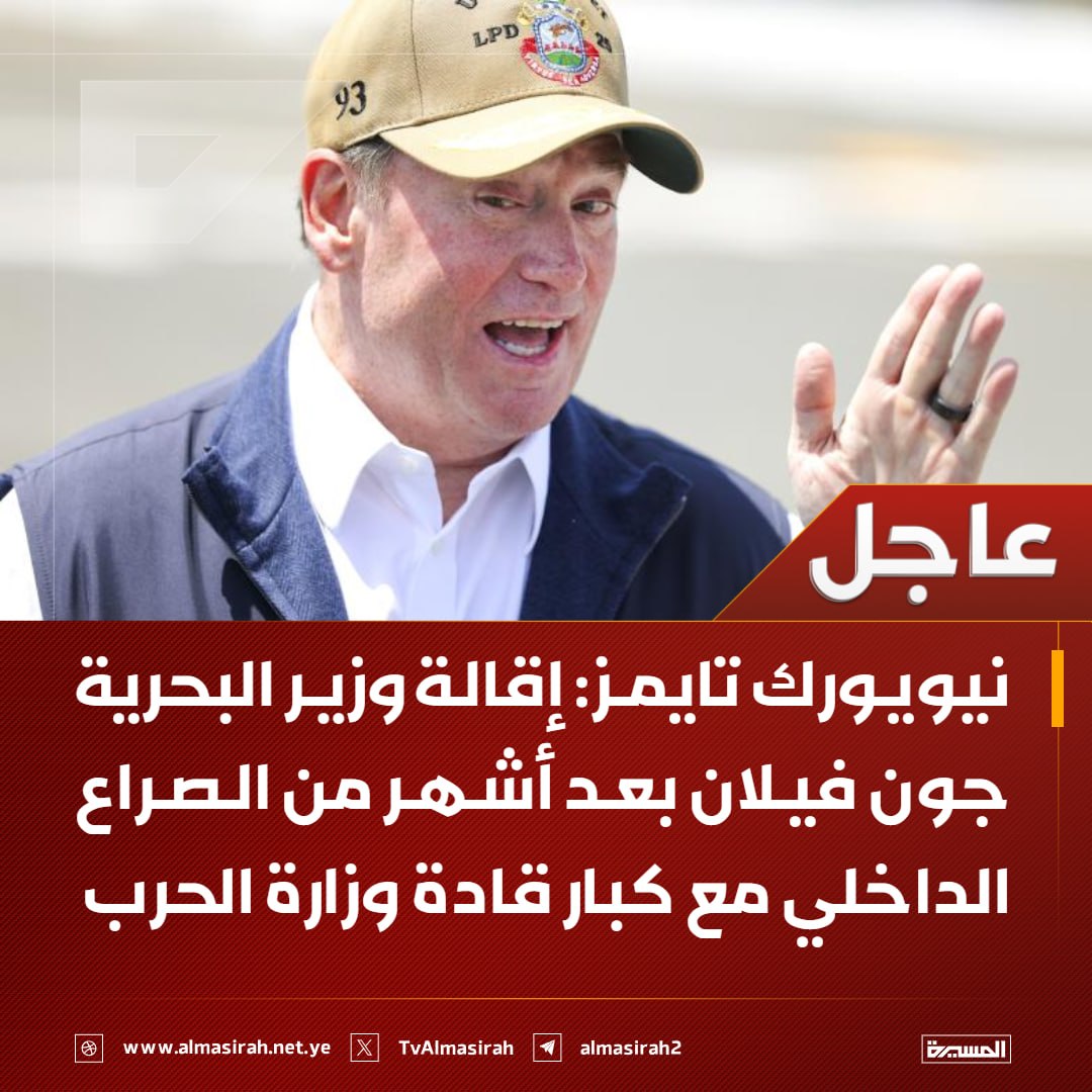 نيويورك تايمز: إقالة وزير البحرية جون فيلان بعد أشهر من الصراع الداخلي مع كبار قادة وزارة الحرب pic.twitter.com/vJSoZCDmOJ