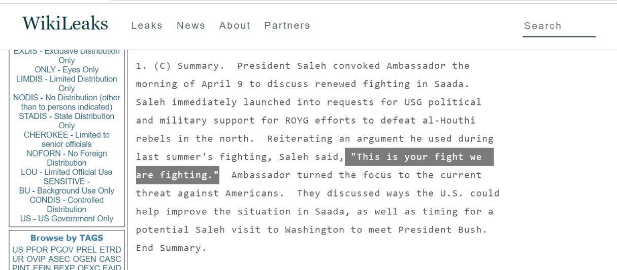 "ويكيليكس" أن التدخل الأمريكي في اليمن كان متعمداً وممنهجاً، ويهدف