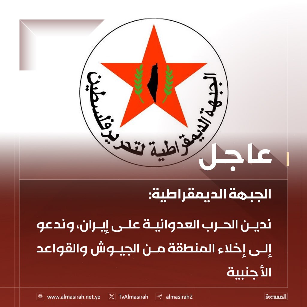 العنوان:الجبهة الديمقراطية: ندين العدوان على إيران وندعو لإخلاء المنطقة من الجيوش والقواعد الأجنبية