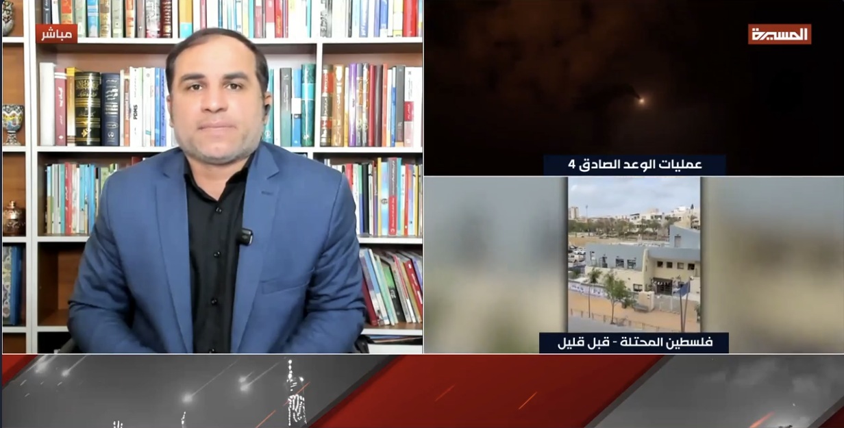 بيان القوات المسلحة اليمنية بشأن تنفيذ عملية عسكرية نوعية استهدفت عمق الكيان الصهيوني في فلسطين المحتلة بصاروخ فرط صوتي استهدف هدفا عسكريا مهما في يافا المحتلة. 15-09-2024م 12-03-1446هـ
